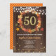 Elegante, chic e animado 50º convite para aniversários de casamento. Ocasião: Aniversário, Tema de Retrimento: Queda, Outono, Época de Ação de Graças Cores: Castanho, Laranja, Paleta de Outono, Gráficos Dourados: Terra de Ação de Graças, Folhas de Outono, Folha de Maple, Dourado Faux, Perfeito de Confetti para senhoras, adultos