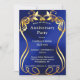 Convite de Aniversário Elegante Azul e Dourado Personalizável.