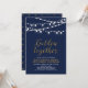 Celebre o seu dia especial com este convite de aniversário de 50 anos, cheio de estilo! Este design apresenta uma tipografia de letra cursiva dourada elegante e luzesinhas em um fundo azul-marinho. Itens combinando disponíveis na minha loja BaraBomDesign.