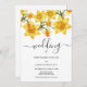 Caligrafia de escrita manuscrita preta elegante com ouro primavera daffodils flores convites para casamento. Este convite floral de primavera botânico de aquarela é perfeito para qualquer garota chique clássica e sofisticada. Este design é ideal para um evento de festa moderno e elegante. Personalize este design com sua mensagem e informações personalizadas. Todas as designs são impressas