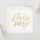 Celebre seu dia especial com este modelo de convite de festa surpresa moderno. Este design apresenta tipografia dourada elegante "shhh...é uma festa surpresa!" com gráficos de confetes dourados. A cor do fundo é definida como branco, mas você pode alterá-la. Perfeito para celebração de aniversário de casamento com tema moderno em ouro & branco.