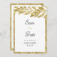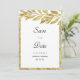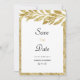 Este elegante e simples Casamento floral de folha branca e ouro Salve o Convite de Data. Um convite elegantemente chic para casamento é perfeito para qualquer garota elegante e sofisticada. Este design é ideal para um evento de tendências e na moda. Design com a sua própria mensagem e informação. Todas as designs são impressas.