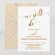 Aqui está uma escolha festiva para as necessidades de celebração do seu aniversário de casamento. Sobre um fundo branco (a cor pode ser alterada para qualquer uma que você preferir), eu coloquei gráficos de tipografia que dizem "we still do" e "and" apresentando uma fonte de letra elaborada e adornada com corações. O gráfico foi então sobreposto com um efeito de ouro falso suave. Uma tonalidade dourada correspondente foi usada para renderizar seus detalhes pessoais. Use os campos de modelo para adicionar seus próprios detalhes e clique para personalizar ainda mais se você quiser fazer qualquer modificação adicional. Todas as camadas estão desbloqueadas para permitir todo o posicionamento e controle de tamanho que você desejar. A parte traseira foi coberta com um padrão repetitivo elegante de quadrados aninhados em ouro falso girados na diagonal.