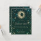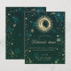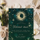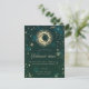 Ouro celestial sol e lua, e estrelas em um fundo verde. Lindo convite para jantar de ensaio que pode ser personalizado com seu nome. Selecione o botão "personalizar" para alterar o estilo da fonte, cor e tamanho.