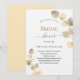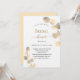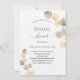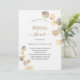 Um fundo branco decorado com ouros de eucalipto. Personalize e o nome da noiva a ser e os detalhes da festa. Letras pretas e ouros coloridas. Fundo: fundo colorido do ouro.
