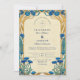 Um refinado Art Nouveau inspirou design de casamento com flores azuis marcantes, enquadradas em detalhes botânicos do ouro. A elegância vintage aliada a fortes sotaques florais cria um eterno, mas artístico, perfeito para casais que buscam um estilo de casamento sofisticado e romântico.