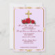 Este belo convite de casamento católico apresenta uma cruz de ouro com rosas vermelhas no pé, colocada contra um fundo violeta leve. O texto é totalmente personalizável, então você pode adicionar seus próprios nomes, data de casamento e outros detalhes.
