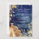 Um belo fundo azul marinho de aquarela tem folhas brancas falsas de ouro nos cantos superior esquerdo e inferior direito. Um belíssimo ouro escancarado, com um corpete de manga e saia cheio adornada com flores rosa, aparece no canto inferior esquerdo e tem um texto personalizável branco e modelos de script de caligrafia por cima que podem ser personalizados para atender às suas necessidades especiais. Há também duas pequenas borboletas azuis do oceano a voar. Esta elegante, luxuosa e moderna design é ideal para a sua filha celebrar o seu aniversário de 15 quinceañera; uma celebração especial de marco feminino ou se você está hospedando uma chá de panela para ser noiva. Adequado aos eventos de verão, primavera, inverno e outono, este convite é certamente deslumbrante.