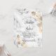 Impressão de mármore como fundo decorado com ouros de eucalipto. Personalize e seu nome e detalhes da cerimônia.