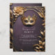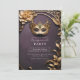 Experimente uma noite de encanto e elegância com este convite de Mascarada Ball. Esta design mostra um rico fundo roxo adornado com decoração falso ouro, folhagem 3D e uma máscara de mascarada cativante.