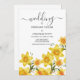 Caligrafia de guião preto elegante com um buquê de verão de flores daffodil ouro, convites para casamento. Este simples convite floral na moda de aquarela é perfeito para qualquer garota clássica e sofisticada. Este design é ideal para um evento de festa moderno e elegante. Personalize este design com sua mensagem e informações personalizadas. Todas as designs são impressas