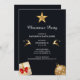 Estrela de Natal, veado de bola e presente em ouro e branco em fundo preto