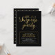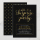 Celebre o seu dia especial com este modelo de convite de festa surpresa simples, mas elegante. Este design apresenta tipografia elegante "shhh... é uma festa surpresa" e moldura simples com textura de folha de ouro. A cor do fundo é preta, mas você pode alterá-la. Perfeito para uma festa de aniversário de casamento com tema ouro moderno.