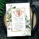 Convite elegante moderno para a primeira comemoração da sua filha. O convite é tão bonito com um verde com folhas botânicas design com fundo de aquarela. Também fizemos o convite com personalização extra com a foto da sua filha para fazer com que pareça mais singular e especial. Basta tirar uma foto com o telefone e adicioná-la à estrutura moderna do miçanga. Entre em contato comigo se quiser personalizações extras ou exigências especiais de design. Estou aqui para te servir.