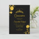 Celebre seu dia especial em estilo real com este convite de Quinceañera, preto e ouro Elegante. Apresentando uma coroa ouro, o fundo preto é complementado por ouro rico Floral, criando um eterno e sofisticado para sua celebração de 15 aniversário. Personalize este convite com seus detalhes essenciais para torná-lo exclusivamente seu. Itens correspondentes estão disponíveis.