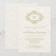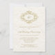 Este convite de festa de aniversário de 50 anos de casamento apresenta um fundo branco cremoso com um visual texturizado. Uma moldura ornamentada e vintage em dourado falso fica no topo com o número 50 no centro, e a redação do seu convite aparece em uma cor dourada correspondente.