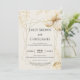 Cartões de convite para cerimônia de casamento moderna para sua ocasião especial! Apresentando flores douradas douradas com folhas pequenas decora a borda do seu cartão de casamento e quadros de design geométrica dourada dos seus detalhes de celebração de casamento em um fundo natural de cor de marfim. Personalize seus detalhes de casamento, data, local e muito mais na frente. Projetado para coordenar com nosso Dourado Blooming | Coleção moderna de convites para casamento e eventos.