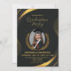 Celebre um marco especial com este elegante Convite à Festa de formatura! Apresentando um design de fundo preto ouro laurel em um elegante plano de fundo preto, este cartão expele sofisticação e estilo. Destacando uma foto central do formando, é perfeito para honrar sua conquista. Personalize-o com o nome do formando, os detalhes do partido e as informações de RSVP. Ideal para reuniões formais e celebratórias
