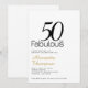 Um convite de aniversário de 50 anos moderno, turquesa e preto que você pode personalizar e enviar para a celebração do seu aniversário de cinquenta anos. As palavras "50 e Fabuloso" são definidas usando tipografia popular.