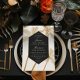 Convites ouro-palmeiras sofisticadas casamento tropical