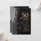 Convite de celebração de aniversário de 50 anos surpresa com ágata preta e dourada. Design moderno e elegante com fundo de geodo de mármore de ágata em aquarela, brilho falso dourado e fonte de tipografia script. Cartão de convite sofisticado perfeito para uma festa de aniversário de casamento elegante. Convites Zazzle impressos ou modelo digital para impressão instantânea.