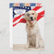 Óculos de bandeira no Ouro Retriever dog dog e na bandeira americana para o convite da festa de 4 de julho.