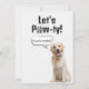 Ouro recuperador com tigela de xadrez de búfalo ligada com bolha de voz para um convite de festa. Texto na bolha de fala e o verso é editável.