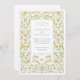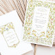 Delicado e eterno, este convite de casamento inspirado no Rococo apresenta um intrincado quadro floral de videiras de ouro, florescentes cor-de-rosa macio e borboletas caprichosas. A borda botânica envolve elegantemente o texto central, que é definido em tipografia serif refinada. O design evoca o charme ornamentado da decoração europeia do século XVIII, mantendo simultaneamente uma paleta fresca de aquarelas. A parte de trás inclui um monograma coordenado em florais correspondentes, amarrando a suíte lindamente. Perfeito para casamentos de primavera ou jardim, ou qualquer casal que ame elegância histórica com um toque romântico.