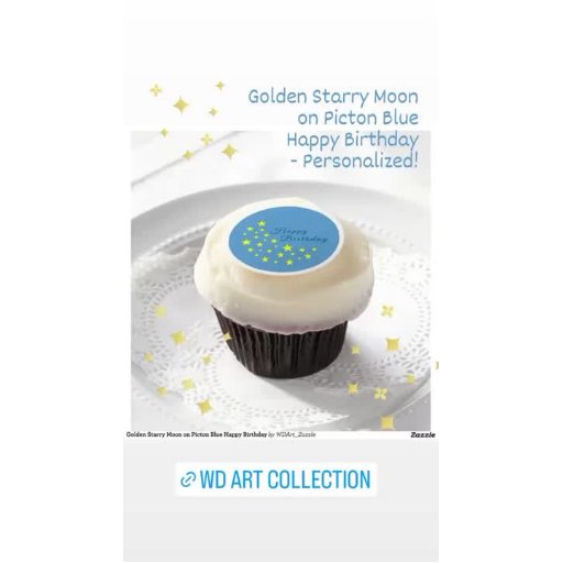Golden Starry Moon on Picton Blue Happy BirthdayCriado por Wafa Dahdal
