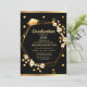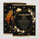 Comemore um momento orgulhoso com este cartão moderno de graduação em preto e ouro. O design frontal apresenta uma elegante estrutura floral e geométrica com bolinhas ouros, enquanto o verso exibe uma impressionante silhueta por sol de um formando segurando seu boné — simbolizando esperança, realização e novos começos. Perfeito para honrar a Classe de 2025 com estilo e sentimento.