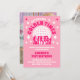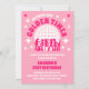 Este convite de festas cor-de-rosa apresenta uma bola de disco e uma tipografia retrô, dando-lhe uma vibração divertida e divertida. A frente do convite é enfeitada com um fundo rosa e uma bola de disco reluzente, estrelas, dançarinas dando o tom para uma celebração viva e enérgica. A tipografia retrô acrescenta ao tema, dando ao convite uma sensação nostálgica de chica. Na parte de trás do convite, foto personalizada da aniversariante acrescentando um toque pessoal ao design.