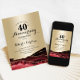 Convite de aniversário de 40 anos em ouro e vermelho rubi. Design formal elegante com fundo de mármore de ágata, ouro brilhante falso e fonte de letra script. Cartão de convite moderno perfeito para uma celebração de aniversário de casamento elegante. Convites Zazzle impressos ou modelo digital para impressão instantânea.