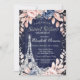 Convites Ouros de Torre Eiffel Marinho Rosas Azuis Doce 16