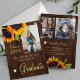 Tipo russo de campo 4 FOTO colagem de festa de formatura de na moda de convite para modelo de de para o fundo de madeira marrom apresentando grandes buquês de girassol de ouro amarelo. +++++++++++++++++++ Personalize com o seu texto e imagens em ambos os lados! ++++++++ O convite é adequado para festas de formatura de jardins/quintais rústicos. ++++++++++++++++++++++ Se precisar de ajuda para personalizá-lo, contacte o desenhador através do botão MENSAGEM abaixo.