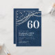 Um moderno, elegante e elegante modelo do 60º convite de aniversário para mulheres com um fundo denim, cordas de pérolas e brilho (são efeitos digitais) e tipografia moderna em branco pérola. Uma design de chic "denim and pearls" para uma mulher que faz sessenta anos, no seu sexagésimo aniversário.