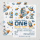 With its orange and blue tones, this gender-neutral invitation is perfect for any baby boy or girl who loves adventure. The playful “3…2…1… Blast Off!” headline adds excitement to your space-themed first birthday party, making it truly unforgettable.