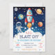 Outer Space Rocket Ship Astronaut Galaxy Birthday Invitation