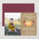 Apaixone-se por esses adoráveis convites de aniversário infantil rústicos com uma foto favorita no lado esquerdo. O design apresenta uma abóbora em aquarela laranja adornada com flores burgundy, rosa e laranja e folhagens verdes em um fundo kraft. "Nossa pequena abóbora está fazendo" aparece no topo em letras de caligrafia sofisticada, com a idade do seu filho inscrita na abóbora. A amostra mostrada é para um primeiro aniversário. Personalize com os detalhes da sua festa de aniversário abaixo em letras brancas.