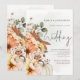 Casamento de Código QR de Script de Abóbora Floral de Outono. Adicione seu código QR ao site do seu casamento no verso, o que torna esta uma opção conveniente para que seus convidados respondam e vejam todos os detalhes sem a necessidade de cartões separados de RSVP e detalhes. Um conjunto de script manuscrito para casamento e o resto do texto você pode facilmente personalizar. Flores de cores de outono e abóbora descem pelo lado esquerdo e atravessam a parte inferior e também estão no verso, com uma lavagem de aquarela de cores pastéis ao fundo.