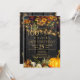 Linda laranja enferrujada e burlada escura outono caem flores e bordas de abóbora com cordas de luzes ouros brilhando sobre um fundo de madeira marrom escura fazer elegante e elegante convite de aniversário de 100 anos com uma tendência escrita manual escrita em dourado. ++++++++ Fácil de personalizar com seus detalhes! Adequado para a rústica tradicional | país | fazenda | reuniões familiares e amigos de quintais exteriores.