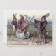 Esta primavera envia a alguém uma saudação Páscoa! Este impressão de colheita retrata um coelho da Páscoa tirando fotos de outros coelhos com uma câmera antiquada. O coelho feminino sentado em cima de um ovo colorido de Páscoa.