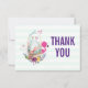 Um cartões de agradecimentos chá de fraldas com uma ilustração de uma aquarela fofa de um ovo sentado dentro de um cesto de vime. Decorados com fitas, arcos, flores e pequenos corações também. Um amigo rosa e coelho branco sentam-se em ambos os lados esperando pacientemente pelo grande dia. A parte traseira tem um banner de revestimento de aquarelas de cor pastel na parte superior com uma mensagem personalizada.