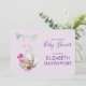 Um doce indício de chá de fraldas com um banner de bunting pendurado acima de uma ilustração de uma aquarela fofa de um ovo sentado dentro a um cesto de wicker. Decorados com fitas, arcos, flores e pequenos corações também. Um flamingo cor-de-rosa e coelho branco sentam-se de ambos os lados esperando pacientemente pelo grande dia.