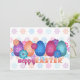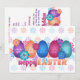 Felz pascoa! É hora da Páscoa Bunny, e isso significa que é hora de caçar Ovos de Páscoa! Celebre a temporada em estilo lúdico com um Convite para Ovos de Páscoa e Flores de primavera. Cinco ovos pastéis multicoloridos em tons bonito de turquesa, roxo, azul, laranja e fúcsia sentam-se seguidos num fundo branco revestido de flores de primavera fofinhas. Uma saudação divertida e florescente de "Felz pascoa" está no fundo. No verso está outra cena de primavera e texto personalizável. Este design é um feliz, contemporâneo, feriado tradicional. Não se esqueçam de combinar os autocolantes e os autocolantes!