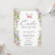 Este adorável convite apresenta a cor d'água pintada manualmente Ovos de Páscoa, orelhas de coelho e flores.