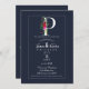 Convites P Monograma Último Casamento Floral Azul Moderno I