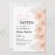 Folha de palma seca e marrom, com cor aquosa, e padrão de flores escamosas, num pano de fundo branco. Fácil personalização para detalhes de nome, idade e evento para atender às suas necessidades.