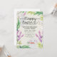 Celebre o domingo da Páscoa convidando seus convidados com estes encantadores convites para brunch de coelhinho de primavera! A design mostra seus detalhes de eventos rodeados por flores delicadas, folhas exuberantes e um belo coelho feliz.