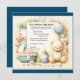 Bem-vindos ao seu pequeno no mundo com o nosso convite de chá de fraldas "Bundle of Joy". Esta bela carta é adorada com um urso de pelúcia carinhosamente ilustrado pronto para levantar suas alegres notícias, para cima e para longe! A paleta serena pastel sussurra a inocência da nova vida com uma cesta cheia de essência de bebê, uma garrafa de bebê e um toque de choradeira.