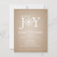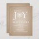 Um convite de chá de fraldas neutro que inclui a expressão "Pacote de Alegria" com uma ilustração de um floco de neve incorporado na inscrição em vez de "O". O fundo é o estoque de papelão castanho inspirado. Personalize o texto com detalhes da sua ocasião.